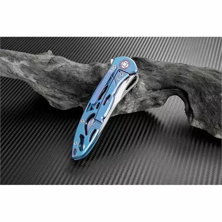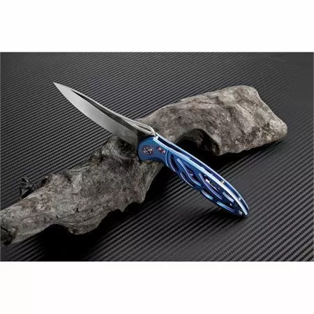 - Artisan 1801GBUS – Dragonfly Framelock S35VN Steel Blade Knife with Blue Titanium Handle