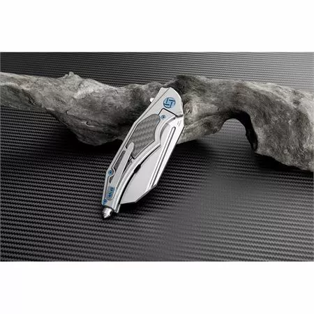 - Gray titanium handle with carbon fiber inlay