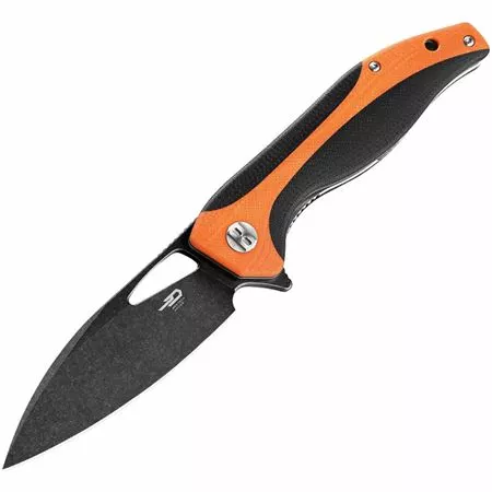 - 3.38″ (8.59cm) black stonewash finish D2 tool steel blade