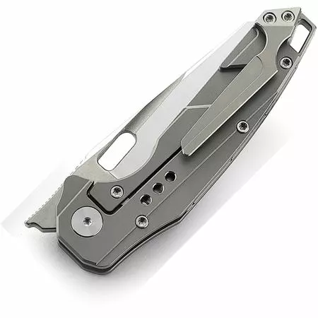 - 3.38″ (8.59cm) stonewash and satin finish S35VN stainless blade