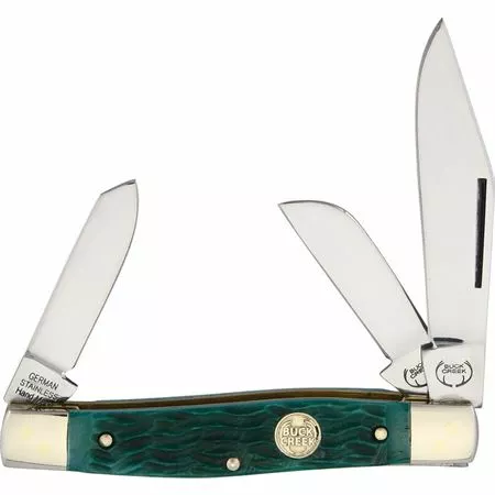 - Closed: 4.25″ Blade: German Stainless l Standard Edge l Mirror Polish Finish; Handle: Green l Bone; Other Info: Inlay Shield l Nickel Silver Bolsters
