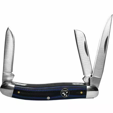 - Satin finish 3Cr13 stainless clip, sheepsfoot, and spey blades