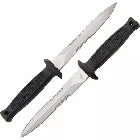 - Includes two 7″ overall daggers with 3 7/8″ stainless double edged blades