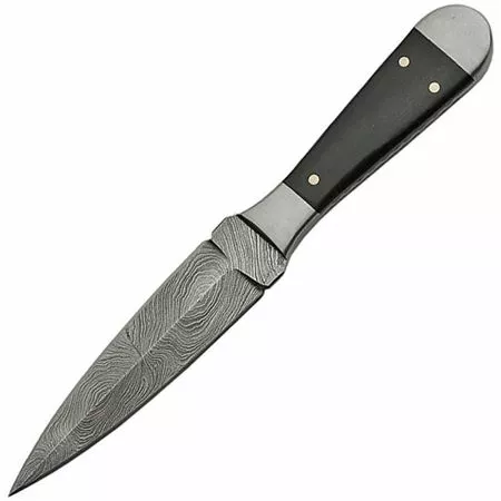 - 3.5″ (8.89cm) double edge Damascus steel blade