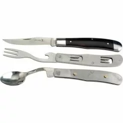 - Slot and tab mechanism allows for disassembly into separate eating utensils