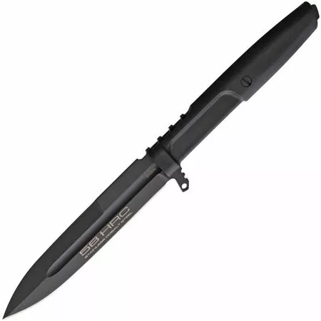 Model – EX0478BLK. Extrema Ratio 0478BLK – Requiem Knife with Black Forprene Handle. 9.25″ overall. 4.5″ black Mil-Spec coated false edge Bohler N690 stainless stiletto style blade. Black Forprene handle. Black nylon MOLLE compatible belt sheath. Boxed. Made in Italy.