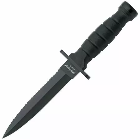 - 6.5″ (16.51cm) black PTFE coated partially serrated 440C stainless dagger blade