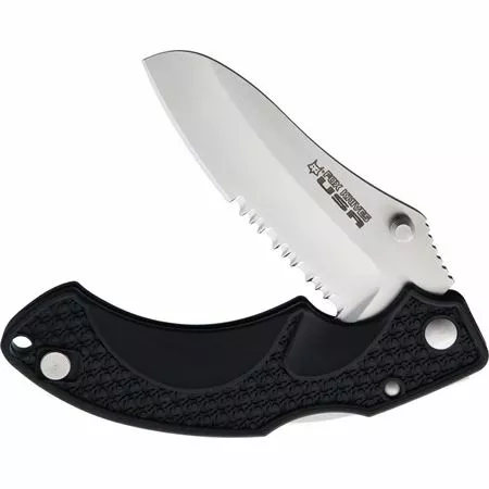 - 3.5″ (8.89cm) satin finish partially serrated 154CM stainless sheepsfoot blade