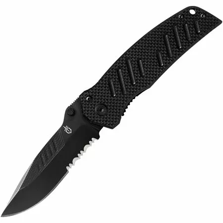 - 3.13″ (7.95cm) black oxide coated partially serrated 7Cr17MoV stainless blade