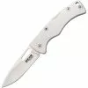 - Stainless round tip serrated rescue blade with bead blast finish and thumb slot