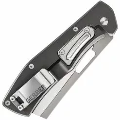 - Stainless round tip serrated rescue blade with bead blast finish and thumb slot
