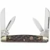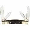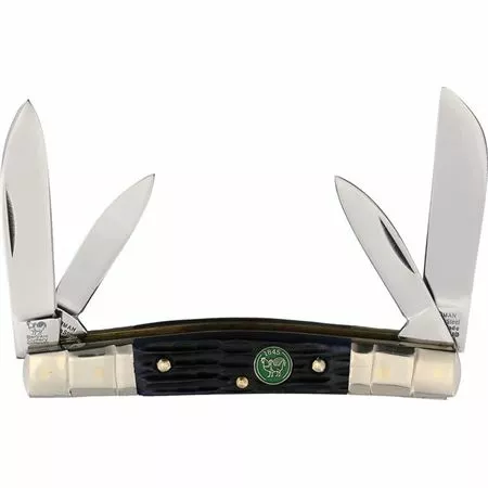 - Satin finish carbon steel twin pen, sheepsfoot, and spear blades