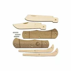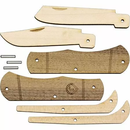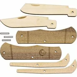 - Each kit features six pieces cut from American hardwood; three metal pins; instructions; and metal storage tin