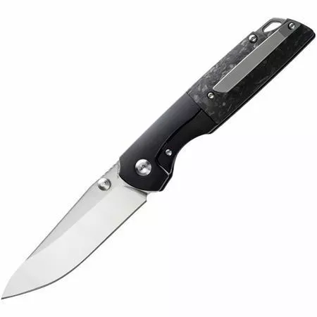 - Black titanium handle with carbon fiber inlay