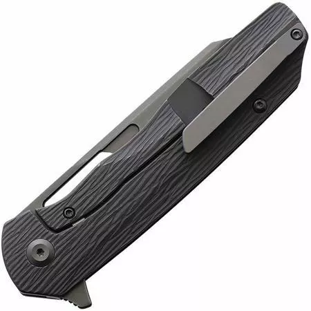 - Gray sculpted titanium handle