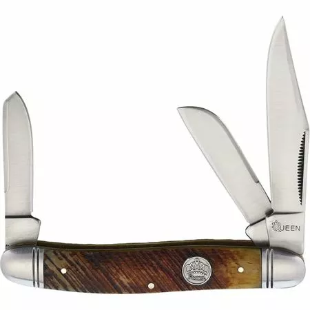 - Satin finish stainless clip, sheepsfoot, and spey blades