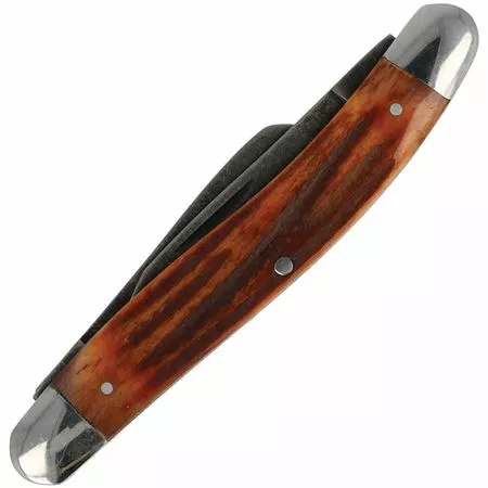 - Black stonewash finish carbon steel clip, sheepsfoot, and spey blades