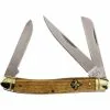 - Satin finish 1065 carbon steel clip, sheepsfoot, and spey blades