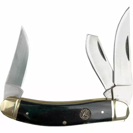 - Satin finish 1065 carbon steel large clip, small clip, and spey blades