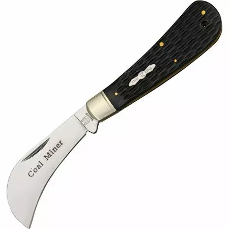 - Rough Rider 1143 – Coal Miner Hawkbill Folding Pocket Knife with Black Buffalo Horn Handle