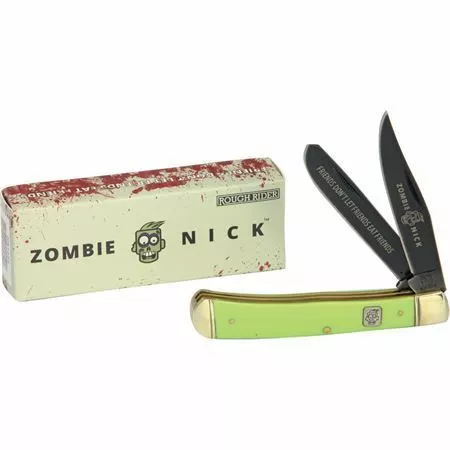 - Rough Rider 1452 – Zombie Nick Trapper Pocket Knife with Green Composition Handle