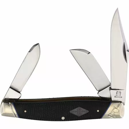 - Mirror finish carbon steel clip, sheepsfoot, and spey blades