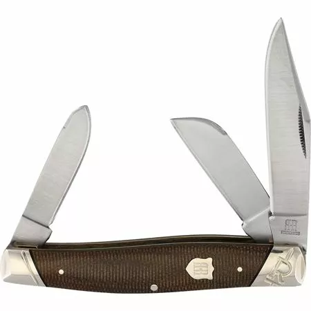 - Satin finish stainless clip, sheepsfoot, and spey blades