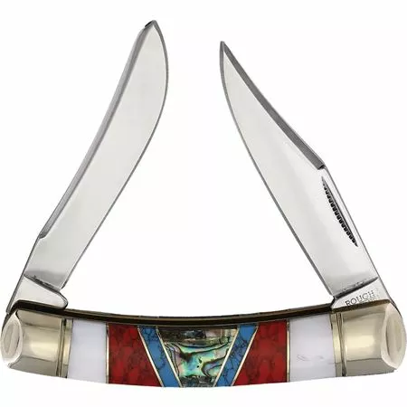 - Red and blue turquoise, Mother of Pearl, and abalone handle