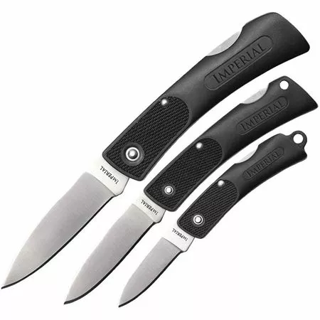 - Imperial Schrade COM6CP – Lockback Folding Pocket Satin Finish Stainless Blade Knife with Black Textured Plastic Handle – 3 Piece Combo