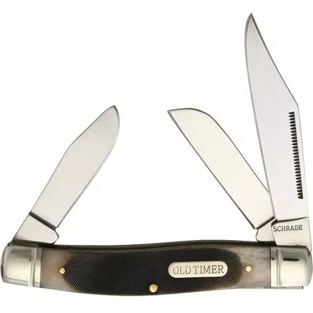- Old Timer Stockman Stainless Folding Pocket Knife with Brown Sawcut Delrin Handle