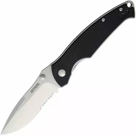 - SRM 913 – Linerlock Sandvik Stainless Drop Point Blade Knife with Black G10 Handle