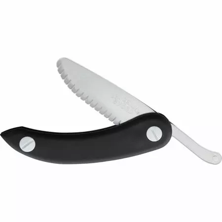 - 2.88″ clear serrated plastic blunt tip blade