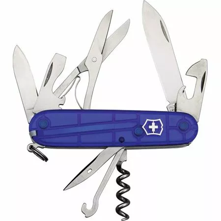 - Tools include: Large blade l Small blade l Corkscrew l Can opener l Small screwdriver l Bottle opener l Large screwdriver l Wire stripper l Reamer with sewing eye l Keyring l Toothpick l Tweezers l Scissors l Hook.