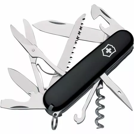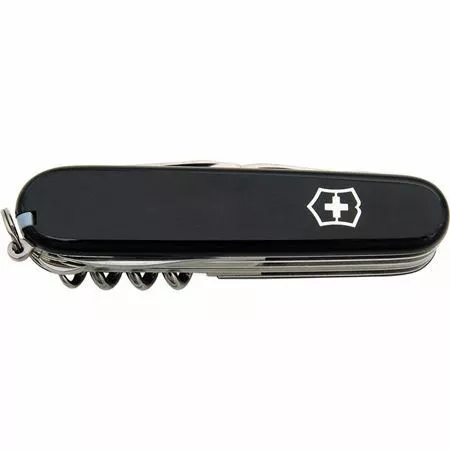 - Tools include: Large blade l Small blade l Corkscrew l Can opener l Small screwdriver l Bottle opener l Large screwdriver l Wire stripper l Reamer with sewing eye l Keyring l Toothpick l Tweezers l Scissors l Hook l Saw blade