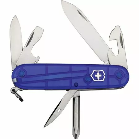 - Tools include: Large blade l Small blade l Phillips screwdriver l Can opener l Small screwdriver l Bottle opener l Wire stripper l Reamer with sewing eye l Keyring