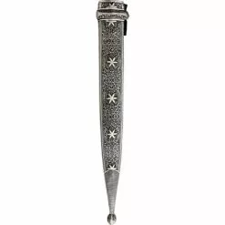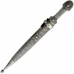 Model/Part Number – VTD0059. VT Daggers Caucasian Dagger Damascus. 20″ (50.8cm) overall. 14″ (35.56cm) Damascus steel blade. Silver plate handle and scabbard with engravings. Bulk packed. Made in Georgia.
