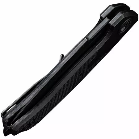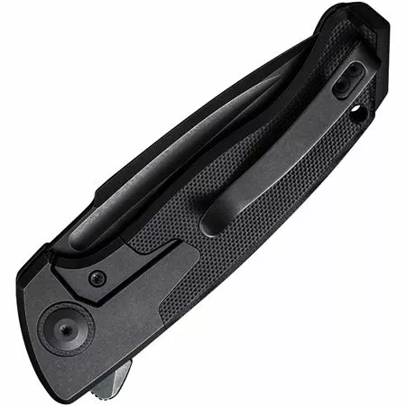 - 3.13″ (7.95cm) black stonewash finish CPM-20CV stainless drop point blade